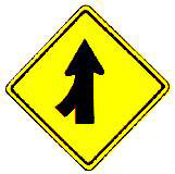 ความหมาย ทางข้างหน้าจะมีรถเข้ามาร่วมในทิศทางเดียวกันจากทางซ้ายหรือทางขวาตามลักษณะ สัญลักษณ์ในป้าย ผู้ขับรถจะต้องขับรถให้ช้าลง และเดินรถด้วยความระมัดระวัง